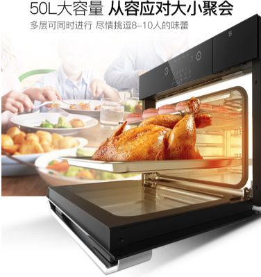 华帝i23003嵌入式蒸烤一体机拥有50L的大容量,,内部至多可以放3个层架,分4层,这意味着用户能够一次性能烹制多份食物,满足了都市青年注重效率的做饭方式。空间更充足,烹饪量更多,一次性烹制一桌美食,能够同时搞定多种美味食品,即便是朋友聚会或者家庭大聚餐的时候也完全没有压力,减轻了做饭人员的负担。