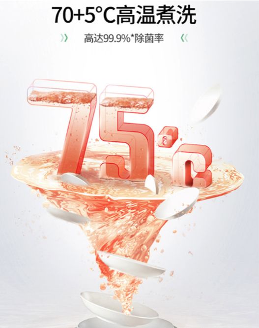 除菌杀菌层面,华帝干态洗碗机采取75℃高温煮洗的方式进行餐具的除菌,比常规洗碗机70℃高出了5℃。高温除菌是一种普遍使用的比较实用的除菌方法。经过广东微生物分析检测中心的检测报告,华帝干态洗碗机的除菌率高达99.9%。