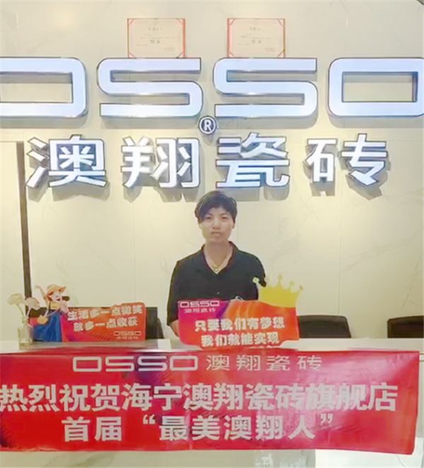 我从2014年步入瓷砖行业,本着诚信热情努力向上和公司的一步步培养,以后我会更加努力,做最好的澳翔人!