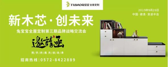 2019年9月26日,兔宝宝全屋定制将召开第三期品牌战略交流会。真挚邀请行业精英一起交流磋商,凝心聚力,共商共赢,一起迎接新的机遇与挑战。