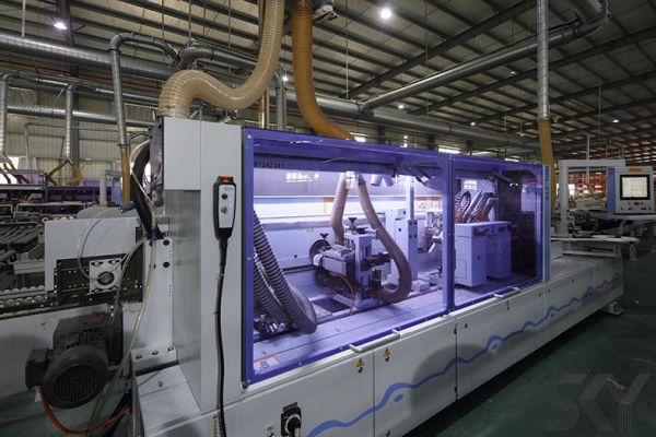 公司厂房占地11100平方米,配备多条先进的生产线、检测设备,六套德国豪迈线,两套意大利UV辊涂线、开料机,热冷压设备,封边机,包覆机等设备一应俱全。整个生产车间流水线均带有吸尘设备,工作环境干净整洁,真正做到了经济效益、环境效益与产能效益相结合。