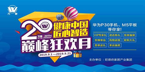 王仲丰先生说到:“回首20年,万象品牌凭着顽强的毅力和坚定的信念,脚踏实地,开拓进取,经过20年的成长和发展,我们取得了辉煌的成绩,如今的万象在全国已拥有近千家万象品牌门店,形成了万象完备的全球供应链体系。今天,让我们一起畅游万象品牌20周年巅峰狂欢月活动!”
