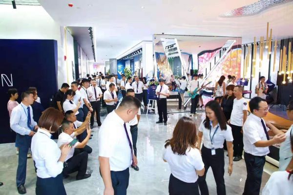 随后,威尔斯陶瓷品牌销售副总经理黄新峰先生作讲话。黄总表示2019年是威尔斯品牌重要改革升级年,威尔斯时刻不忘秉承“国际化、年轻化、时尚化”的高端品牌理念,从全局出发,与时俱进,紧贴国际潮流设计。本次“V-LIFE 印象”通过注入威尼斯水文化设计元素和现代美学设计理念,选用大规格系列核心技术产品,营造出轻奢、极简、国际范的整体风格,体现威尔斯总部展馆的“博大”的气魄与魅力。本次“V-LIFE 印象”由威尔斯一流设计团队全力打造,历经数十日,今天正式首次对外开放,它标志着品牌实现发展的新跨越!