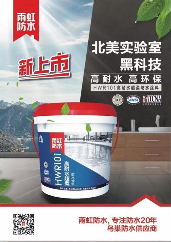 雨虹新品HWR101高耐水超柔防水涂料,谱写耐水环保双重新高度!