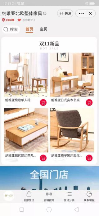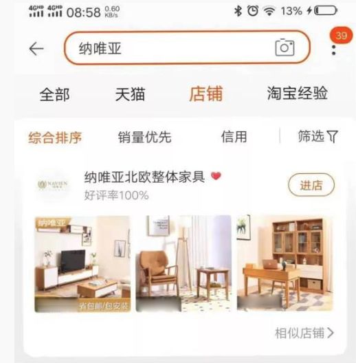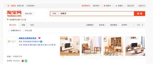 纳唯亚北欧整体家具顺应时代的潮流,扩大纳唯亚品牌营销渠道,增加了线上营销——淘宝店(纳唯亚北欧整体家具)。