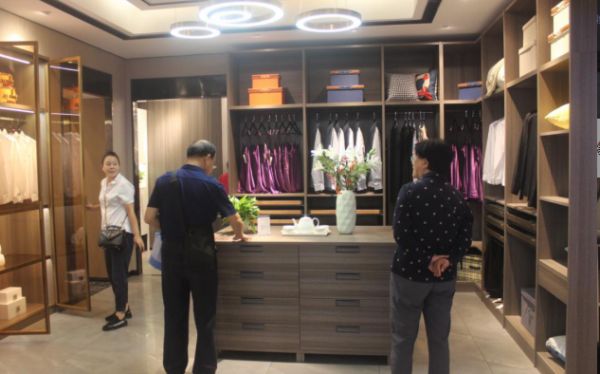 客户在展厅选购净醛抗菌组合衣柜