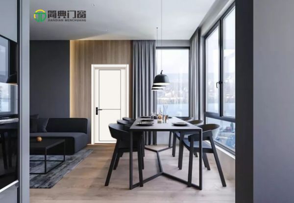 简典全铝室内门无污染排放,回收率可达100%,可再生循环利用,甲醛零排放,不用油漆,凸显绿色健康的人性关怀。