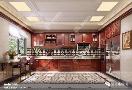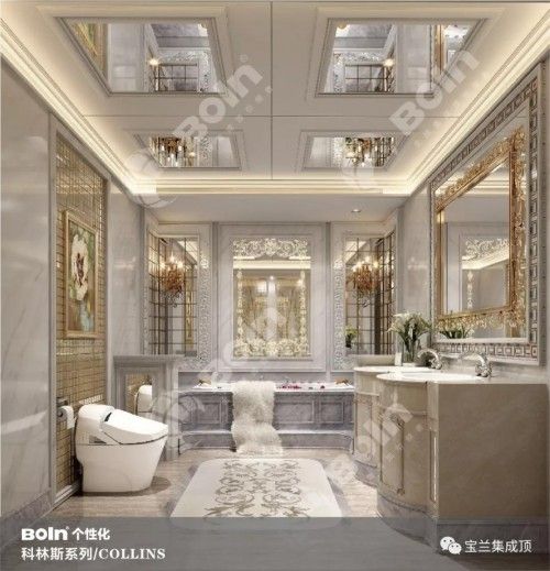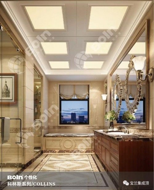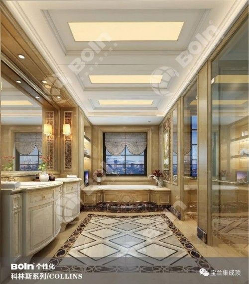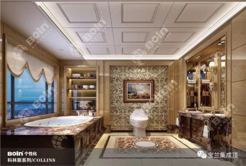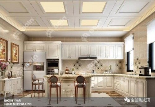宝兰个性化科林斯系列集成顶设 计来源于欧洲古典文化,在华丽美观的图案呈现多层次的形状,因而适应各种观赏角度。在华丽的装饰、淡雅的色彩、精美的造型达到雍容华贵的空间效果。不止是豪华大气,更多的是惬意和浪漫,完美的典线,精益求精的细节带给家人不尽的舒适感。