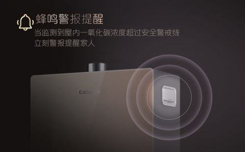 为确保热水器的用气安全,“卡萨帝零冷水热水器CR5S”创新专利一氧化碳安防系统,24小时实时监测,不仅能监测热水器本身的用气安全,还能监测家中整个用气环境。当发现一氧化碳浓度超标时,迅速声光报警,同时启动风机快速排出一氧化碳,全天守护家人安全。