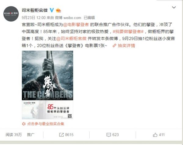 有《攀登者》超级IP加持,司米橱柜在活动开启短短几天内,活动微博阅读量39万,“我要做攀登者”话题阅读量达到283.3万,讨论量2.5万,全网累计曝光量超千万,实现打造刷屏级话题。