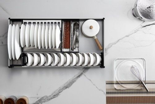 希勒·三边篮,给予厨房百变的魅力。希勒三边篮,针对不同家庭的饮食差异与国人的餐饮特点,三边篮内配置了百变鱼碟架、百变置碗碟架、双子餐具舱、百纳置碟舱,不同的餐具都能有专门的收纳区,各个收纳配件均可对摆放的位置进行自由组合,更可自由地取出使用。