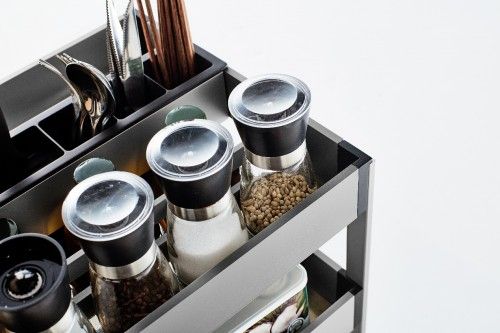 希勒·调味品篮,满足厨房收纳的更多需求。希勒·调味品篮配备了全功能刀架,双菜板存放区以及大容量厨具独立存放区,烹饪工具拿取更顺手。盐糖酱醋等调料原本的包装大小不一参差不齐,用收纳罐装起来存放在调味品篮内更整洁有序,篮内设置的便捷调味品区及高瓶收纳区,更适用各种调味品的瓶罐尺寸。选配“零”阻力顺滑推拉的优质导轨,可有效减少收纳物品因开关拿取所产生的碰撞损耗及生活噪音。
