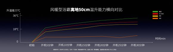第二种观点认为,浴室取暖器必须将风速做高才能实现室内快速升温的效果,他们认为只有较高的风速才能将暖风送至地面,加上热空气上升的原理,上下对室内加热升温相对同步。这两种不同的观点导致了不同的浴室取暖器产品有了较大的升温体验差异。