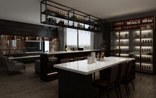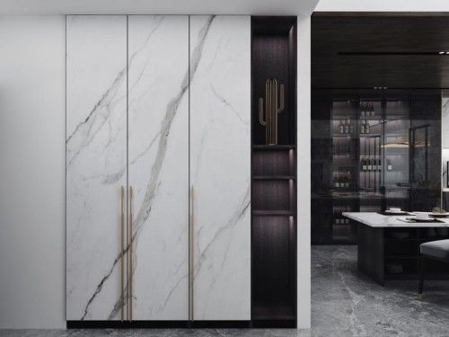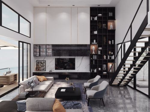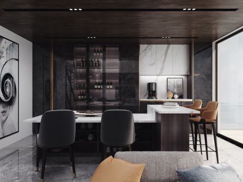 简约冷冽的大理石搭配高光云墨石形成理性与人文的对话,局部点缀拉丝金属,在简约的空间中,运用不同层次的色调,演绎低调沉稳的另一类奢华。