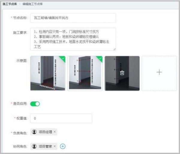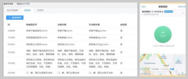 (规范检查项目,拍照上传每项验收结果,GPS 50米范围签到)
