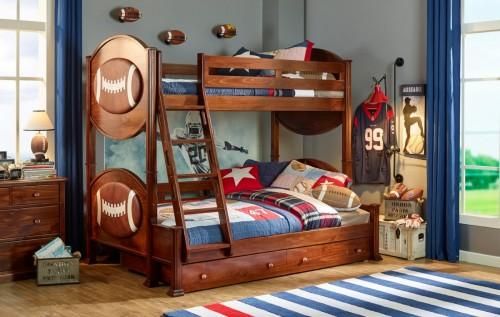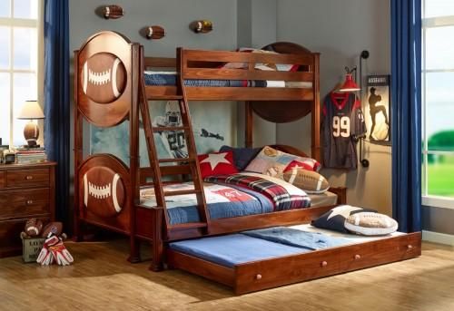 橄榄球主题双层床:经典欧美学院咖色、简洁明朗的线条和得体有度的造型,传递着设计师对欧美学院运动风的理解与推崇。