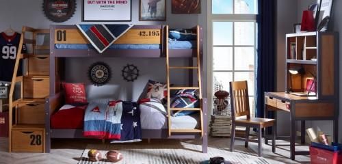 马拉松主题双层床:一段42.195公里的路程,是对自我与极限的挑战,喜梦宝设计师意在为孩子们提供个性、运动和自我创造的生活空间,以马拉松不断战胜自我、挑战极限的精神魅力时刻感染着孩子们。