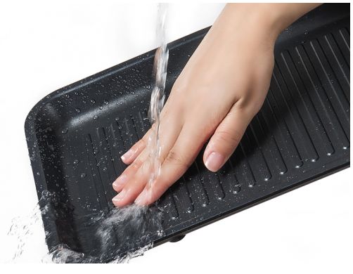 这款面板除了发热均匀外,还能hold住任何平底厨具,放个玻璃壶就可以用来煮茶,铺张锡纸就能烧烤,展现真正的“多功能”。微晶玻璃一体式覆盖发热盘,食材油汤想滴入发热盘都难。有污垢用抹布或厨房湿巾一擦就行,清洁不留死角。