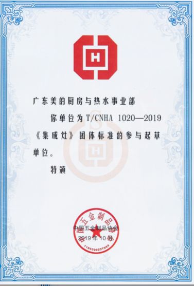 据了解,中国五金制品协会负责组织起草的T/CHINA 1020-2019《集成灶》团体标准共计5项,分别对集成灶、智能锁、螺纹式钢管接头、淋浴房、下水组件等五金产品做出规范。担当本次发布的团体标准的主要起草单位以及参与起草单位均为行业龙头企业,而作为行业领导品牌,美的在此次团体标准制定的过程中发挥了至关重要的作用。