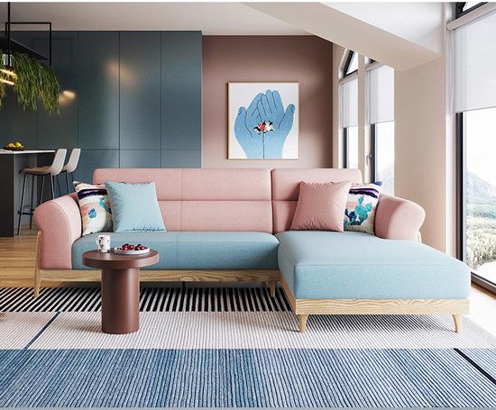 这款沙发真的深得独居人士的心,非常便捷的模块化设计,一个人也可以1分钟快速拆洗。人体工学设计吻合人们身体放松时的姿态,有效呵护颈椎,舒缓腰背压力。白蜡木木材拥有加倍承重力,还有天然宽度优美纹理,耐磨仿棉麻的面料可选颜色,粉蓝双色搭配,十分清新。