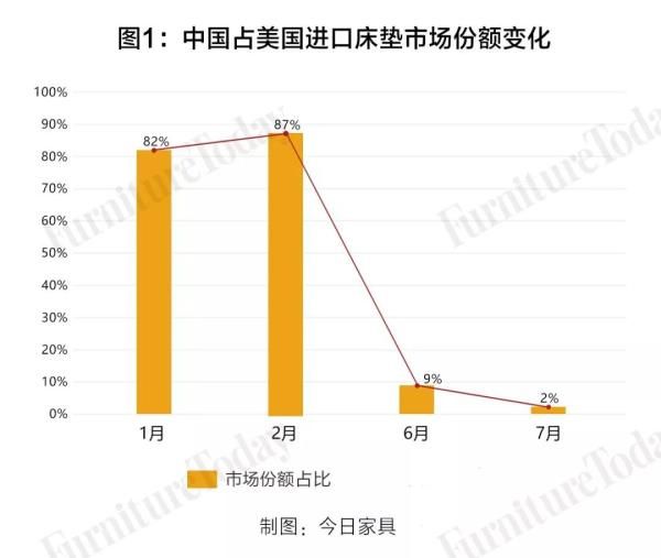 6月,中国占美国床垫进口市场总额的9%,7月则仅剩2%。