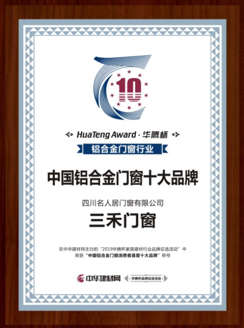 荣誉加冕,是对其实力的充分肯定,三禾门窗荣获“2019中国铝合金门窗消费者喜爱十大品牌”殊荣,实至名归!
