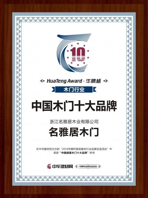 名雅居木门荣获“2019中国健康木门十大品牌”