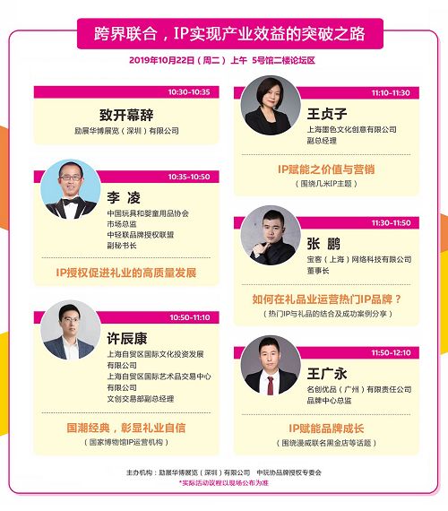 本次论坛活动邀请了中国玩具和婴童用品协会副秘书长李凌先生,一起探讨IP授权与礼品业的开发;现场将围绕国家博物馆及几米IP进行主题分享;同时还有成功运营小黄人IP的上海宝客、时下大热漫威联名黑金店的名创优品进行实例分享。