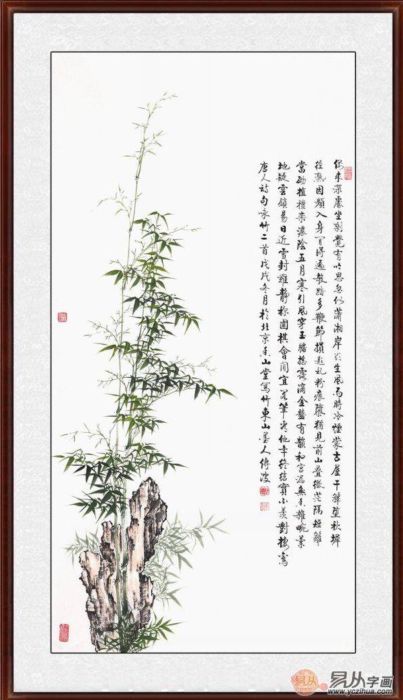 竹石 李传波四尺竖幅绿竹画《咏竹诗两首》