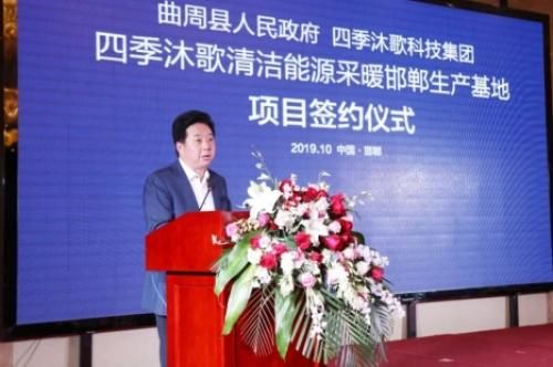 日出东方董事长徐新建对邯郸市政府、曲周县政府表示感谢。并表示作为国内领先的清洁能源综合解决方案提供者,四季沐歌将在未来的生产经营中进一步加大投入,将四季沐歌曲周公司建成北方地区清洁能源改造的全产品生产基地。