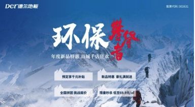 在本次活动最后,主持人再次将本次全国大促“环保攀登者”活动优惠带给观众。一年一度的双十一来临之际,为回馈新老客户对德尔地板一如既往的支持与喜爱,德尔地板特推出“环保攀登者”年度狂欢大促,新品抢先定最高立减1500,实木任性选全场封顶199元/m²,还有限量秒杀产品低至69.9元/㎡,我们将以最强的优惠力度和最具性价比的产品,向生活中的每一位攀登者致敬!