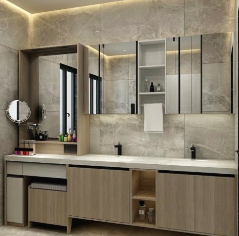 身处过于凌乱的卫浴间很难让身心全然放松,经过精心定制后,多功能组合浴室柜洗漱、收纳、化妆三不误,每天精致的猪猪女孩就是你了~