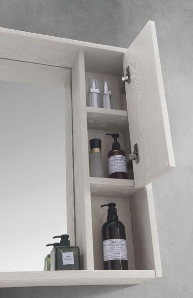 半开放式镜柜开放搁板放置洗漱用品,方便拿取,柜门后收起生活中的瓶瓶罐罐,既保持了美观整洁,又能保护易碎品。