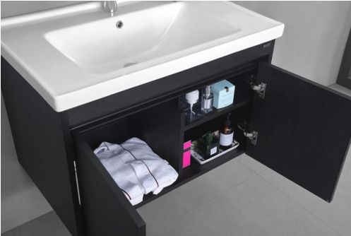 相较于落地柜,悬挂式柜体,底部可自由收纳面盆等小物品,同时无卫生死角,清洁打扫更方便。