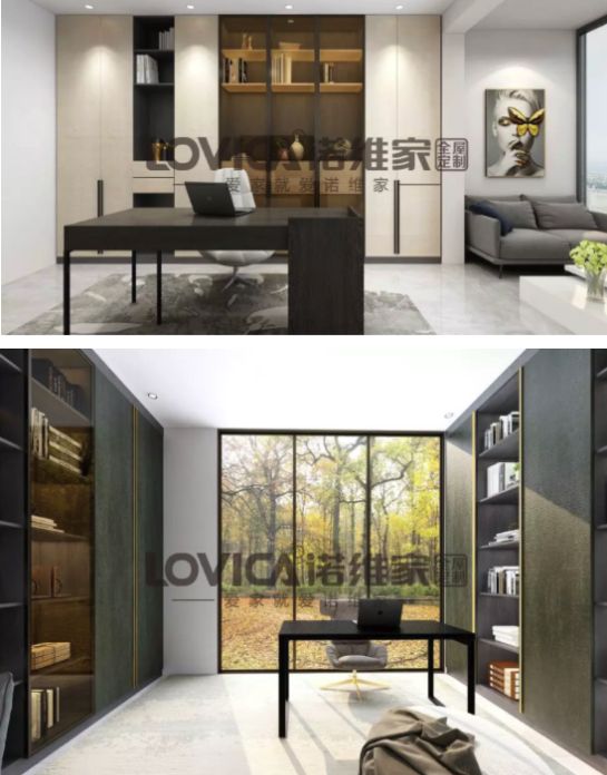 诺维家这款书房设计,充满了时尚的元素,利用黑色、白色、墨绿色和灰色的多种色彩点缀,设计出一个很有灵性的书房,相信在这样的一个书房看书,肯定是一种享受吧!