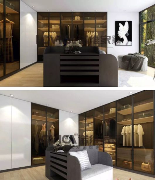 诺维家这款衣帽间的设计,在色彩方面,大量采用了黑、白色块,流畅,明快跳跃,有节奏感,搭配透明可见的衣柜,呈现出富有朝气的生活气息。布局自然,稳重,大气,却又不失品位,有令人眼前一亮的感觉。家就是家人的放松港湾,以人为本的设计理念会更符合业主的需求。
