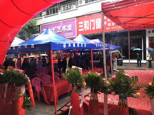 10点18分,在现场主持人的宣布下,容声集成吊顶洪江专卖店正式开业!现场礼炮齐鸣,热闹非凡,就是雨再大,也阻挡不了人们的热切观看。
