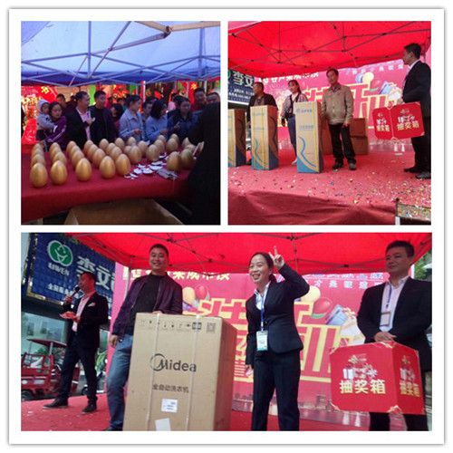 成功购买容声集成吊顶产品的业主还可参与砸金蛋、抽奖等活动,最终送出容声立式饮水机、美的全自动洗衣机等奖品。