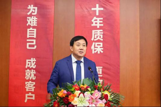 10月10日,业之峰董事长张钧在“十年质保”服务承诺发布会上致辞