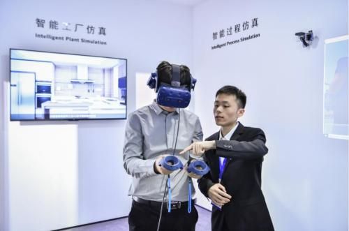 嘉宾利用VR技术现场体验数字化工厂设计过程