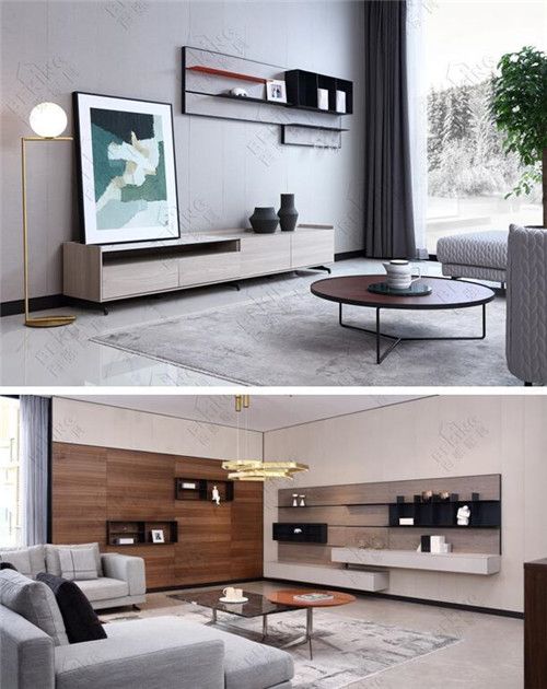 客厅墙面壁挂产品年,主打意大利简约轻奢风,选自意大利、德国同步流行色——高级灰,深灰的墙面呈现出空间视觉“辽阔”的效果,在灯光的照射下营造出温暖的氛围。此类型的壁挂产品一共有三种明度的变化:深灰、中灰和浅灰,可根据消费者的喜好,以及套色效果进行选择。灵巧有格调的柜体家具置身其中,与这高级灰相得益彰,有一半的功劳得归功于玻璃与木材等多材质元素的精妙融合,实现设计上的搭配美学。