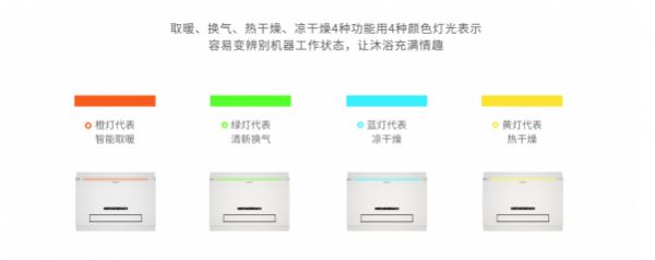 重点关注人与技术的互动。目标是增强人们理解可以做什么,正在发生什么,以及已经发生了什么。在微至浴室暖空调的氛围灯光展示上,功能开启会显示对应的氛围灯光,比如智能取暖是橙色,换气是绿色、凉干燥是蓝色、热干燥是黄色。同时,在信息显示屏上的功能显示也清楚的告诉用户正在运转的功能。这是一种机器和人的互动,让沐浴过程变得更有趣。
