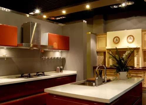 经常下厨房的朋友应该有所体会,晚上的光线不好,如果背对灯光不仅会影响烹饪的心情,一不小心还会切到手。所以加一个LED吸顶灯是必要的,颜色不要日光灯。这样食物不会失色。同时橱柜的下方也要装上小射灯,这样切菜的环境就更清晰了。