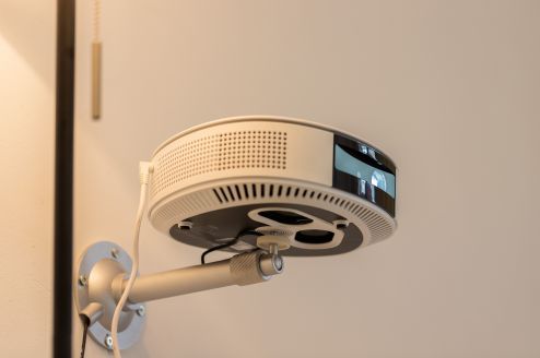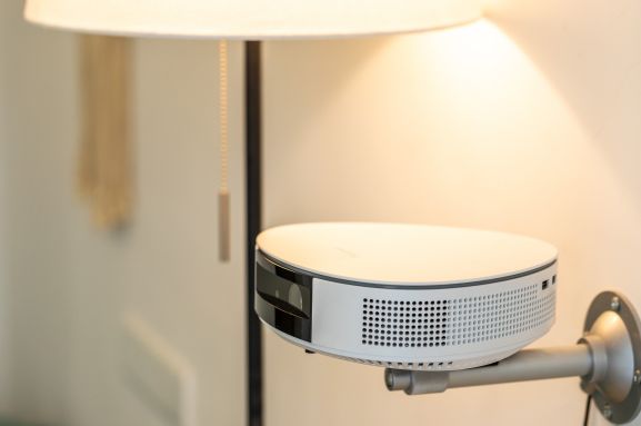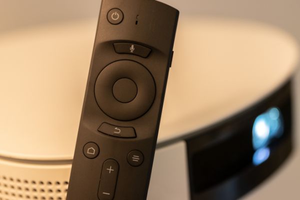 还有很多人性化的设置,如:遥控器的语音操作,可以通过语音安装应用,一句话全搞定。遥控器的侧边键,长按就能自动对焦,短按能调出设置菜单栏。所以,用起来完全不是问题。不仅仅是一款智能投影,更是一个智能音箱,音质杠杠的。