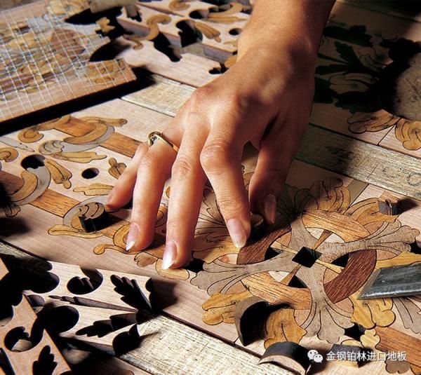 拼花地板源于几百年前欧洲巴洛克时期,皇宫贵族们用颜色各异的天然木种拼接成富丽堂皇的图案来装饰地面,是贵族和富人的象征。