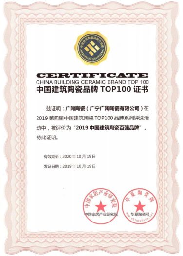 广陶陶瓷荣耀上榜2019第四届中国建筑陶瓷TOP100