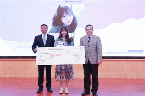 图:曹甲昌、倪阳生为大赛金奖得主余洁琼颁奖