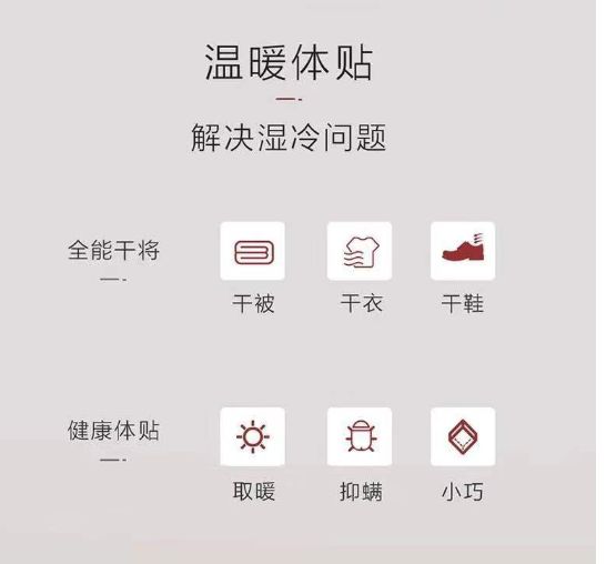 爱丽思干衣暖被机,除了暖被,还可以在冬季、梅雨季和采光不好的房间里进行干衣、烘鞋和除螨,真正意义上做到一机多用,省钱放心。