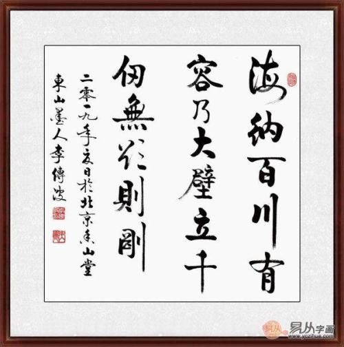 林则徐自勉联 李传波书法《海纳百川有容乃大 壁立千仞无欲则刚》作品来源:易从网