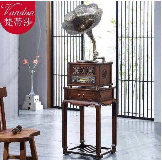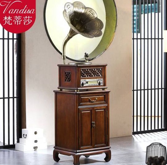 梵蒂莎中式风格的留声机,结合储物的需求,将尽可能多的空间留给客户的同时,又能保证音质的效果。